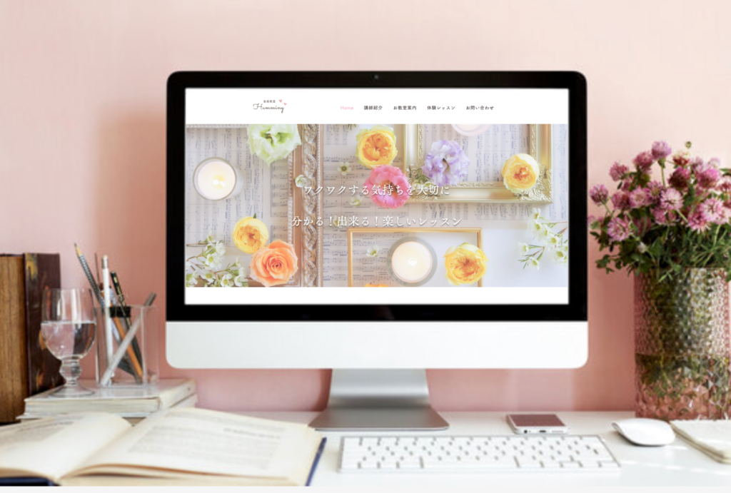 お洒落で自由度の高いデザインが叶う。お教室のご案内サイトやLPとしても◎無料プランがありコストや手間をかけずにホームページを持つことができる。